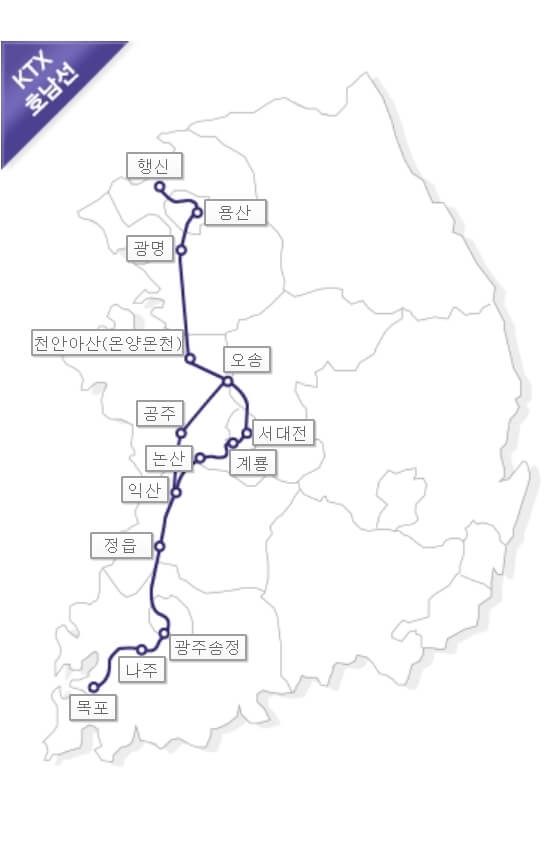 그중 KTX 호남선은 백제 불교의 중심지인 익산을 따라 내장산 관광특구가 있는 정읍, 우리나라의 근현대사를 대표하는 여행지가 많은 목포까지 이어지는데요. 아래 준비된 호남선 KTX 열차시간표, 노선도 및 요금표가 머지않아 있을 호남 여행 계획에 도움이 되었으면 합니다.
